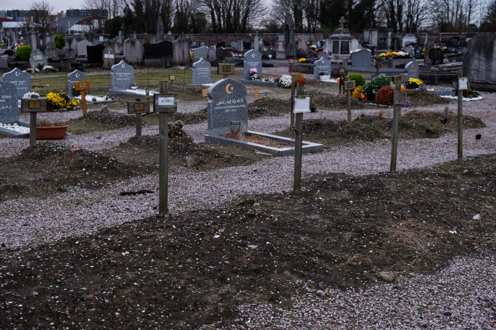 Il y a, au milieu du cimetière nord de Calais, un carré de tombes nues. Ce sont de tristes monticules de terre sablonneuse avec en guise de stèles de simples écriteaux en bois où sont inscrits les nom, prénom et dates du défunt. Certains ne comportent qu’un nom et une date, d’autres seulement un nom. D’autres encore, rien qu’un numéro.