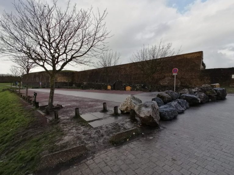 La mairie de Calais a installé jeudi des rochers près d'un fort historique, sur une zone actuellement occupée par les...
