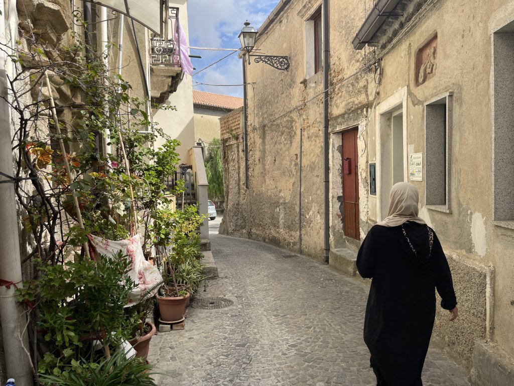 Amal Ahmad Okla se décrit comme « la première arabe » de Camini. Arrivée en 2016, cette Syrienne de 43 ans et mère de cinq enfants a fui Damas en 2013 pour le Liban. Après trois ans de misère, sans travail, elle a pu bénéficier du programme de relocalisation du Haut-commissariat des Nations unies pour les réfugiés (HCR) et démarrer une nouvelle vie en Italie, à Camini. En Syrie, son frère et sa mère ont été tués en même temps dans un bombardement.